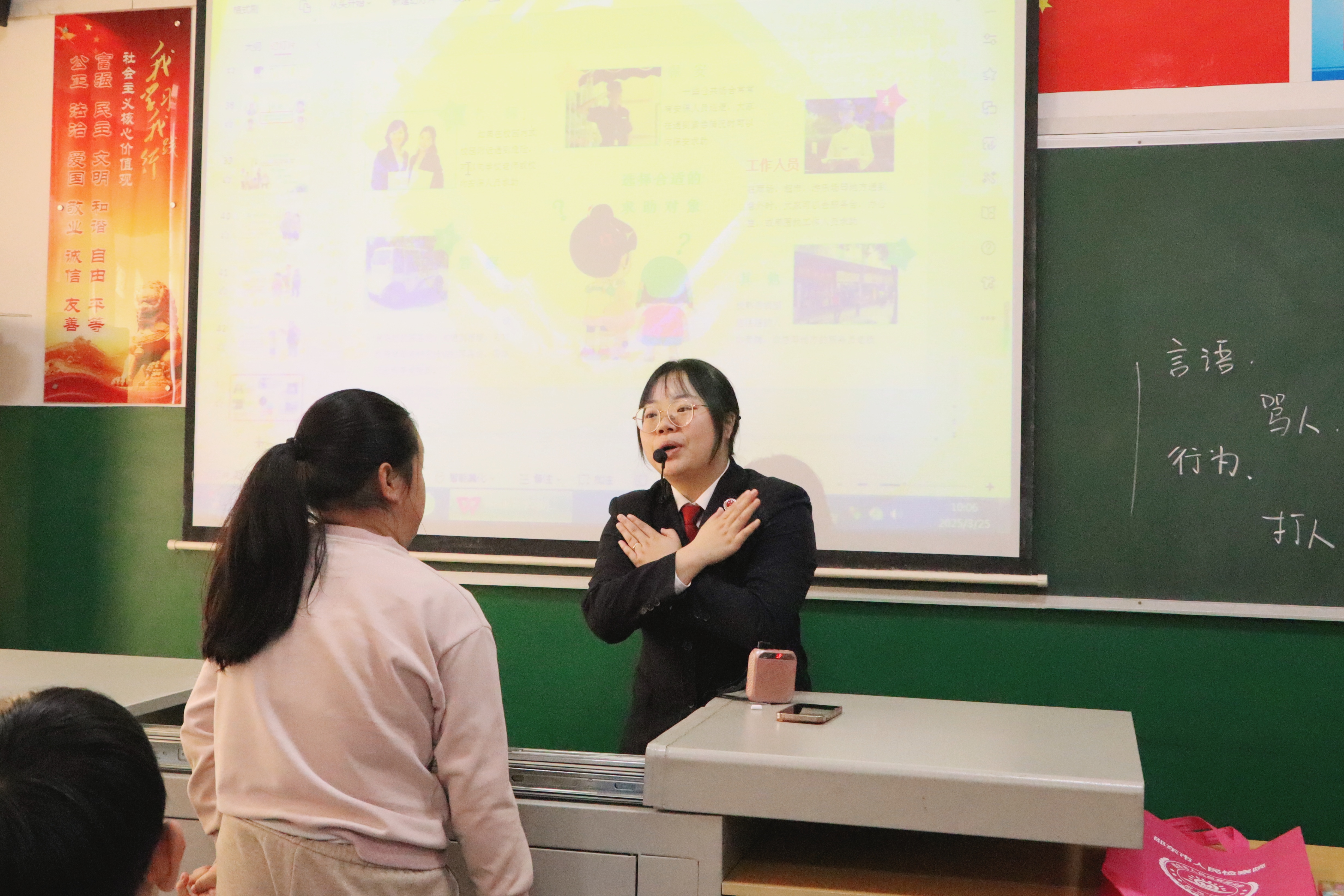 “特殊未成年人自我保护能力相对较弱,更容易受到不法侵害,需要给他们更多的关注和呵护。”为此,来自邵东市人民检察院的法治副校长在课前与学校老师进行了多次沟通,双方达成一致意见,邀请了学生家长一同参与听课,帮助家长掌握更多预防侵害知识,凝聚保护合力。